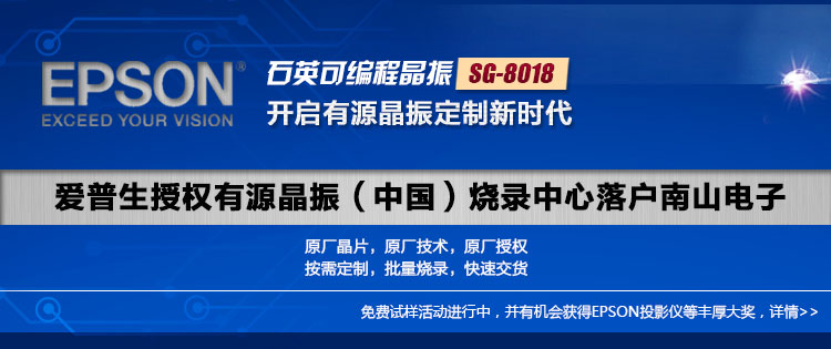 爱普生与南宫电子共同为有新品开发和型号替换需求的用户,免费提供SG-8018系列石英可编程晶振样品。