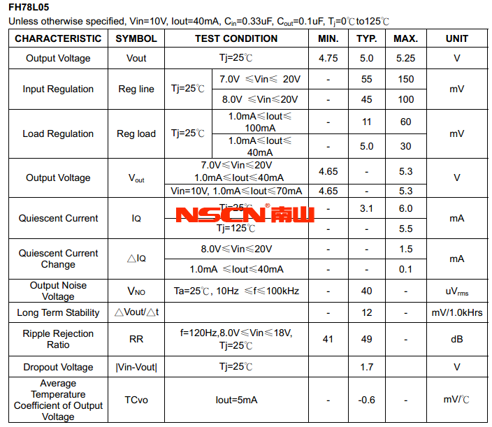 三端稳压器有效利用几个固定电压得到较宽的应用范围,可替代混合 的齐纳二极管和电阻时,而且更低的静态电流。适合 100mA 的各种稳压要求。这些电压可以用在逻辑系统,检测仪器,HIFI ,和其他点子设备。可以替代过热保护 IC。以NSP-78LXX 为例,主要参数如下